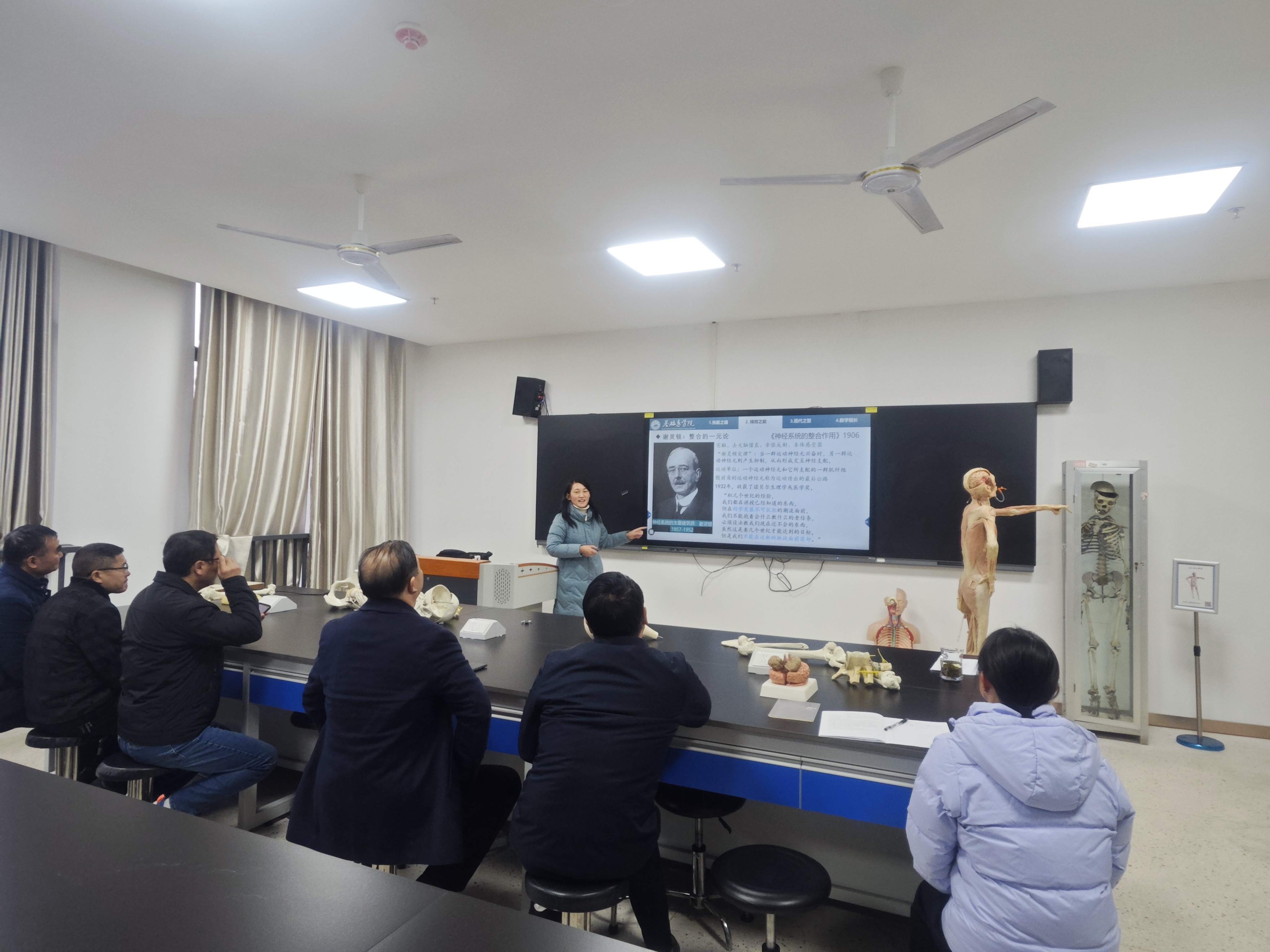 为深入推进课程思政与专业教学的深度融合,落实立德树人根本任务,2025 年 12 月 17 日下午四点,yl23455永利集团齐爱青老师面向人体解剖学教研室全体教师,开展了题为 《“塑魂”与“塑能”:系统解剖学神经系统的课程思政教学设计》 的专题讲座。讲座以神经系统教学为切入点,系统阐释了如何在专业知识传授中融入价值引领,为教研室教师打造优质课程思政教学提供了清晰指引。