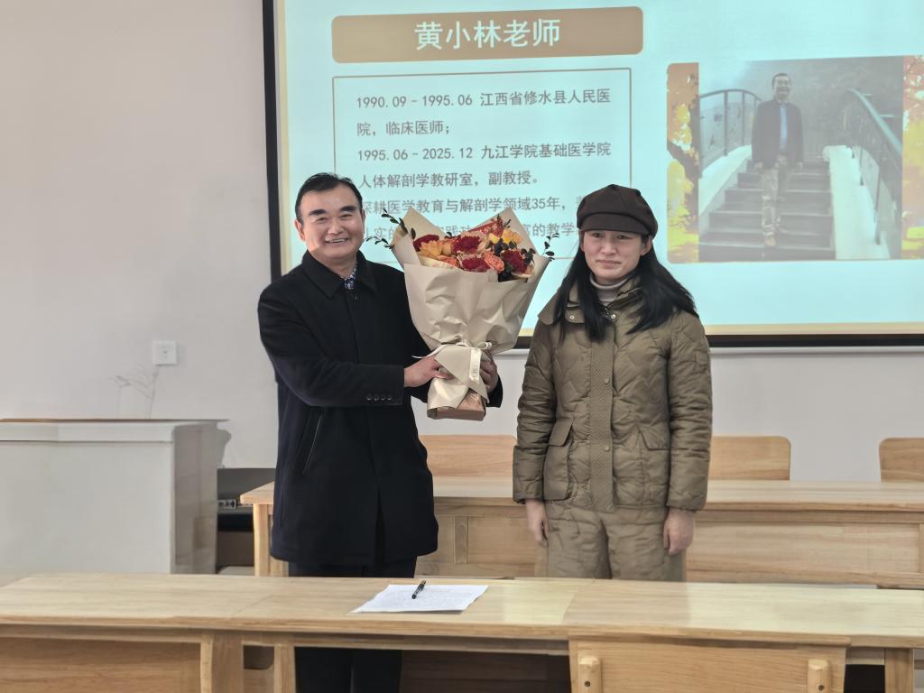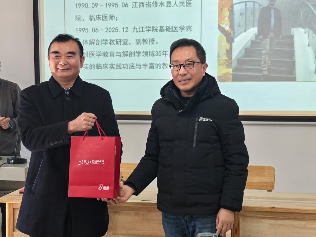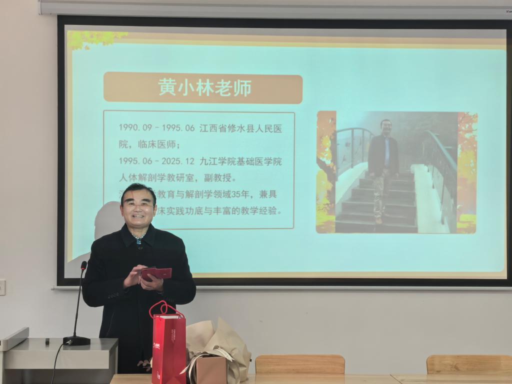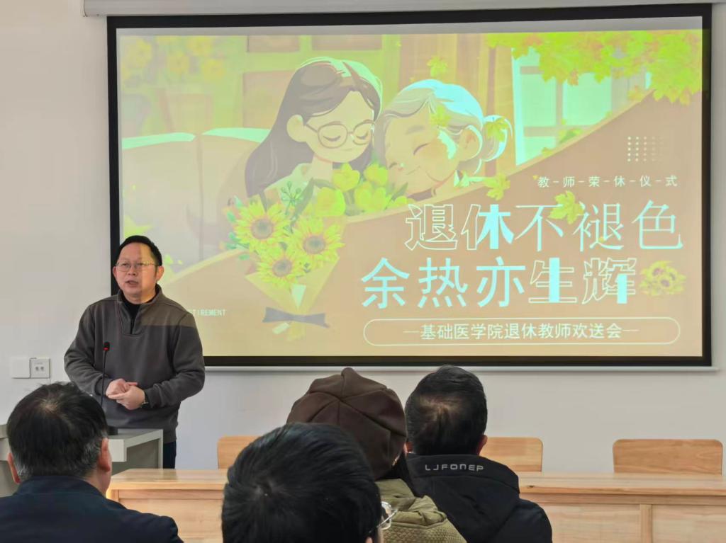 仪式上,许晓源深情地逐一回顾并介绍了三位退休教师数十年来的工作经历与主要贡献。在漫长的执教生涯和管理服务工作中,三位老师始终坚守育人初心,勤勉敬业,默默耕耘。无论是在教学科研前沿探索求真,培养了一批又一批优秀医学人才;还是在教学管理岗位上精益求精,保障了教学秩序的有序运行;亦或是在实验教学一线耐心指导,为培养学生的实践创新能力付出了辛勤汗水,他们都以高度的责任感和卓越的工作业绩,为学院的建设与发展做出了不可磨灭的贡献。许晓源代表学院全体师生,向三位老师多年来的无私奉献和辛勤付出表示最衷心的感谢,并祝愿他们退休生活丰富多彩、幸福安康。